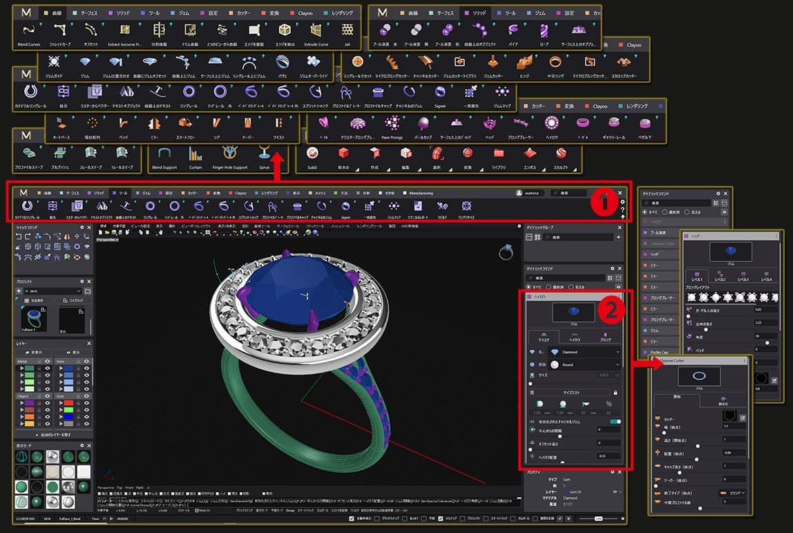 PaveとGems on Surfaceを一緒に使用すると、パーソナライズされた宝石のレイアウトに完全な自由が与えられます。