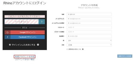 ※すでにRhinoアカウントをお持ちの方はこのステップは必要ありません。
